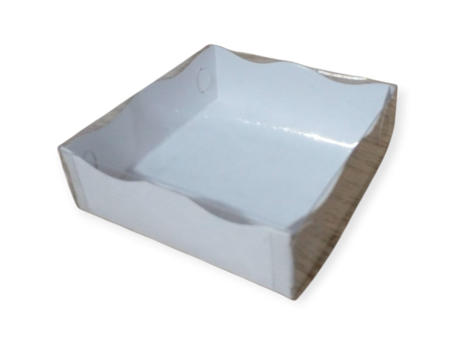 15 x 15 x 4.3 cm de alto, base en blanco o Kraft (16 bombones)