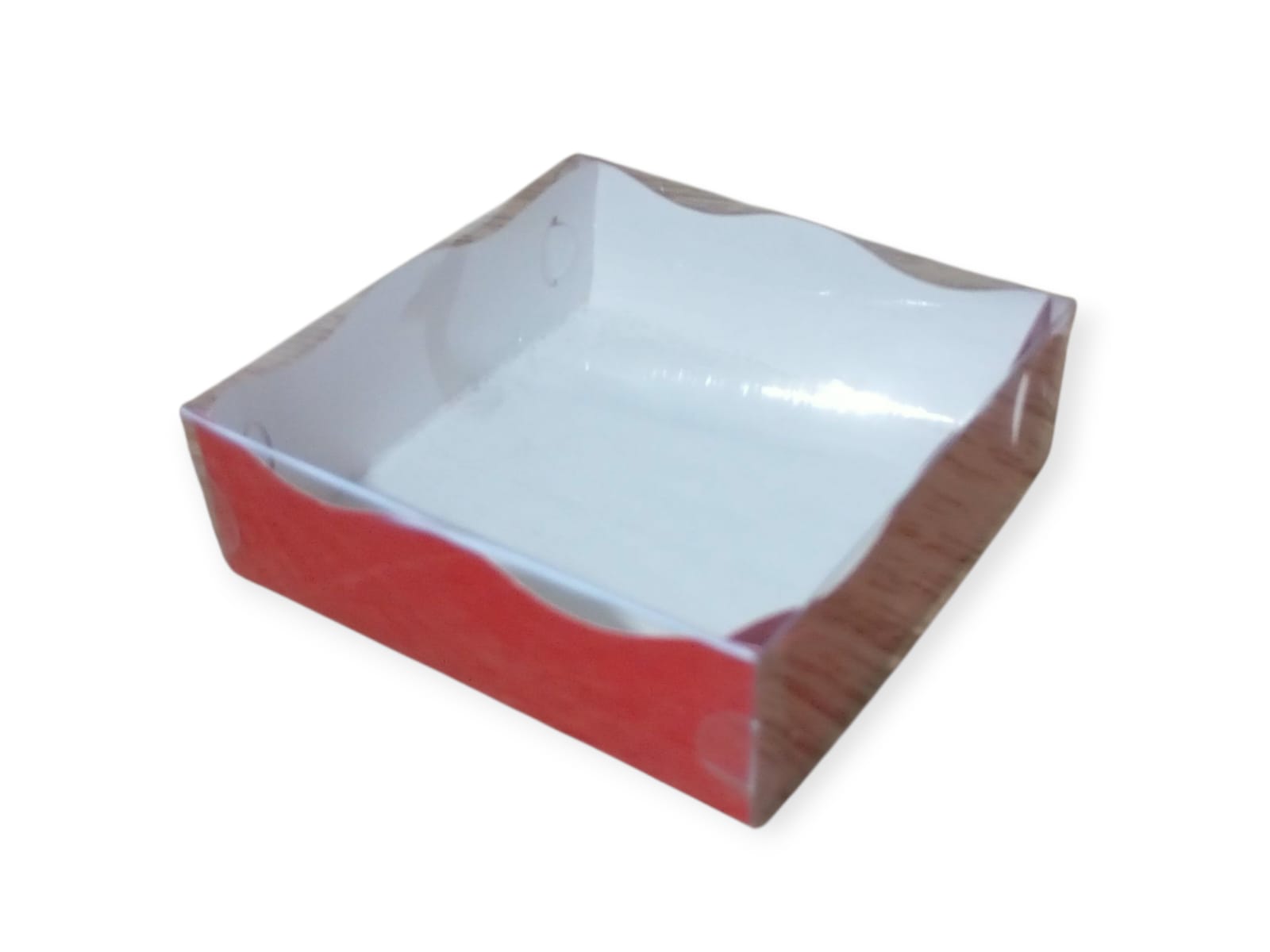 15 x 15 x 4.3 cm de alto, base roja (16 bombones)